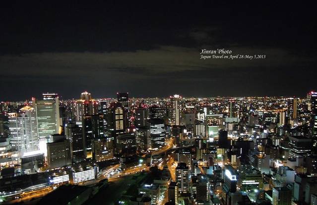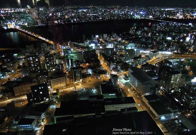 19:00 梅田空中庭园 到大阪怎能不看夜景呢?我们选的是梅田空中庭园。离地面173公尺的高度,360度的蓝天步道,大阪夜景尽收眼里。这里还有个小插曲,在步道上拍照的时候,有个男生请我帮忙合影,是两个男生一起,我拍完了给他们看时问了一句:ぃぃですか?他们没说话,可能是国人吧,太黑了没有认出乡亲,唉!回酒店时不小心又迷路了:(,在路上分不清东南西北的情况下,我们毅然决然的进入了梅田地下迷宫,兜兜转转的,在闻到熟悉的大阪烧时终于松了口气,找到回酒店的路。