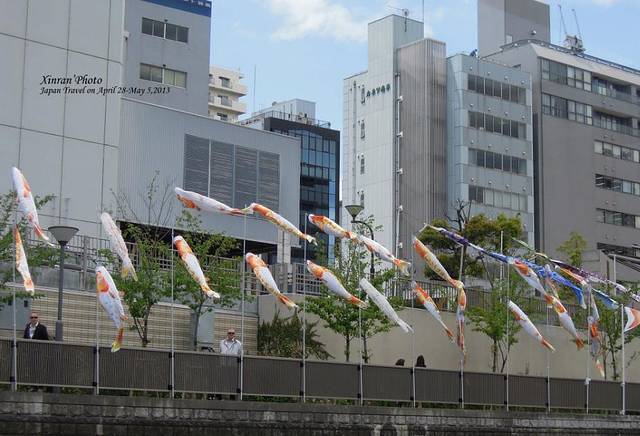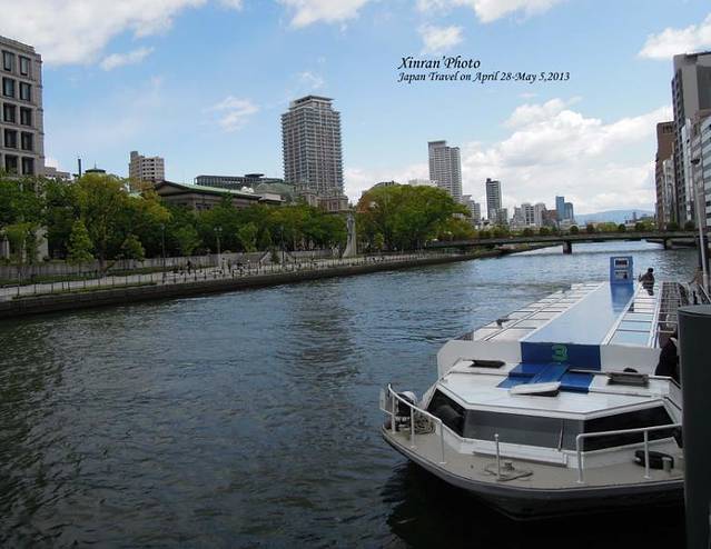 10:00 时间刚刚好,可以去坐水上巴士了。卖票的女孩已经等在水上巴士的入口,我们坐船离岸,看到女孩满脸微笑挥手,船上的人也向她挥手,直到看不见为止;下一站另一个女孩,送一拨人上船,微笑挥手致意……。这里的女孩不能说有多漂亮,但干干净净的,面带微笑,给人赏心悦目的感觉。再不得不感慨,大阪护城河的水真清啊!有一段路边挂了鲤鱼旗,让我想起了那个蓝胖子:)本打算一直坐到道顿崛的,因为不是周末,我们只能到淀屋桥码头。