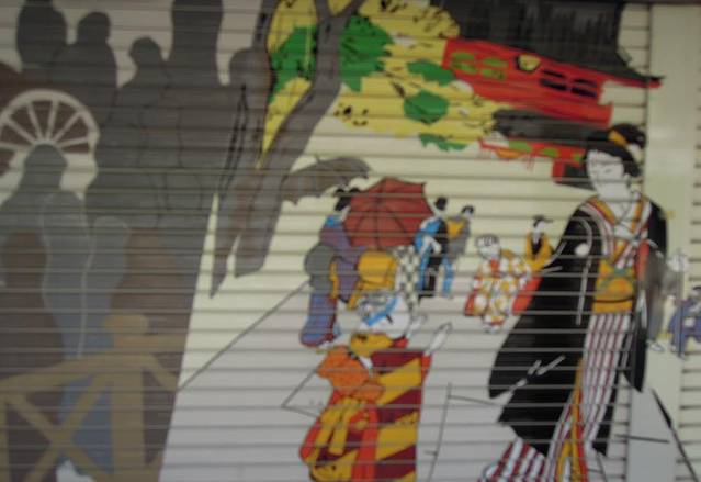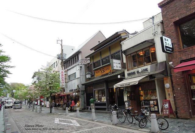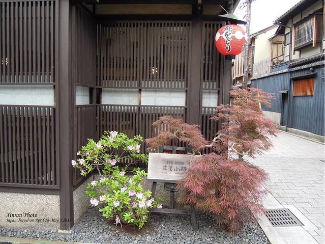 16:00 祗园——花见小路 走到花见小路,就是京都有名的歌舞伎街了,我们到的比较早,大部分店还没有开门,当然,看到价目表之后我们也就不考虑进去了。忽然看到一个装扮好的歌舞伎过来,电视里看已经很白了,亲眼见到,觉得更白!但是走路的姿势真的很优雅,赏心悦目,有路人热情的要求合影,她也乐于接受,但拍了几张之后人越来越多,她就表示很赶时间,匆匆的走了。
