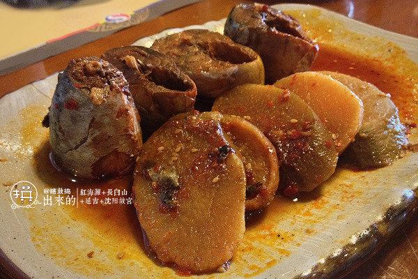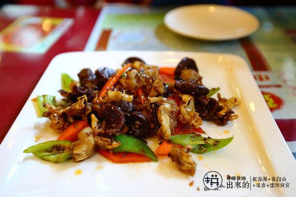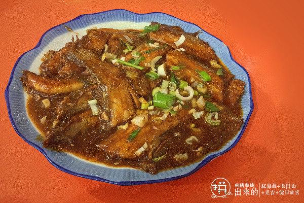 西坡游毕,才发现,饱览美景果然可以充饥!一天下来,竟然没有正常用过早餐、午餐。 那么,就让我们好好饱餐一顿晚餐吧! 早已查过,这里最特色的美食就是:冷面、狗肉汤饭、土鸡、秋刀鱼。 思想争斗了一番: 土鸡太昂贵,还不一定是正宗的土鸡; 冷面要留在延吉吃, 嘿嘿,那就点个秋刀鱼吧! 红烧秋刀鱼,28米/盘秋刀鱼很像带鱼,但是比带鱼要窄,要嫩, 红烧之下,还能感觉鱼的鲜美和香嫩, 这顿饭吃得很受用! 东北菜量传说都很大,这个虽然不是超级无敌那种,一盘还真不少! 我和老公又额外一人一碗米饭,ok搞定!