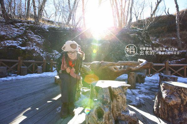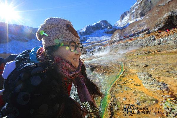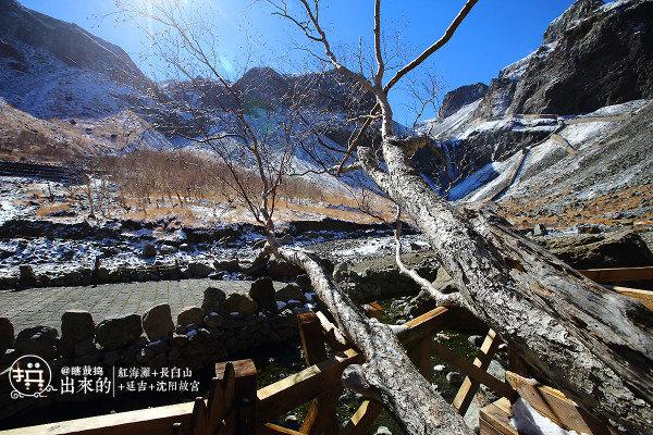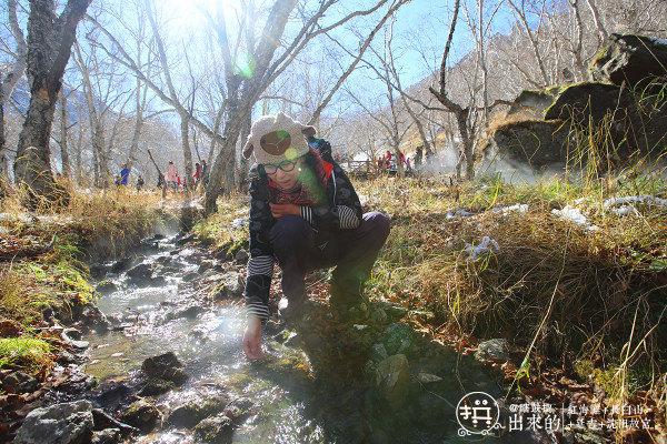 长白山瀑布下来,我们步行至乘车点换乘景区车前往下一个景点。 本来十分钟的路,竟然走了半个多小时。 还是那句话:景区人多,分流限行,走的每一步都很费劲。好在这些坚挺的岳桦树漂亮非常,一道美丽的风景伴我们前行。而且,我们在路上摸到温泉水了捏! 虽然水温已经被冷空气降温不少(长白山温泉属于高热温泉,多数泉水温度在摄氏60度以上,最热泉眼可达82度),依然很烫哇! 啊。。。烫!这个世上怎么会有温泉这么神奇的东西!正冻得哆哆嗦嗦呢,摸了摸这泉水,顿时暖和和滴~~话说我真是out到家了,这是平生第一次摸到这露天的、大自然的温泉捏!……(*^__^*) 嘻嘻……
