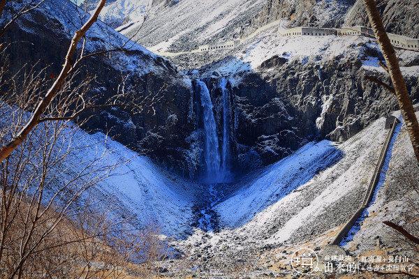 长白瀑布位于天池北侧,乘槎河尽头。乘槎河流到1250米处便形成落差为68米的瀑布,因系长白山名胜佳景,故名长白瀑布。由于落差大,在两条雪龙似的水柱猛烈冲击下,溅起浪花无数,飞雪漫天,崖下形成20多米深的水潭。湍急的流水柱入二道白河,即松花江正源。长白山瀑布挂在群峰竞秀的半壁天堑上,景致蔚为绮丽壮观。 一下车,我们就开始环顾四周。 是的,昨日的大雪,让这里银装素裹!雪后的阳光甚是迷人,它依然奔放、热情,与蓝天白云,皑皑白雪一起,拼成了一幅绝美的风景画。在天池北侧,面积达9.2平方公里、平均深度达到204米的一池水倾泻而出,蔚为壮观, 形成了我们前面要到的“长白山瀑布”。