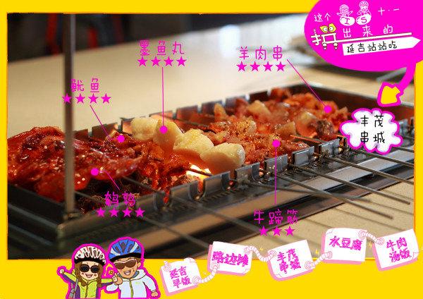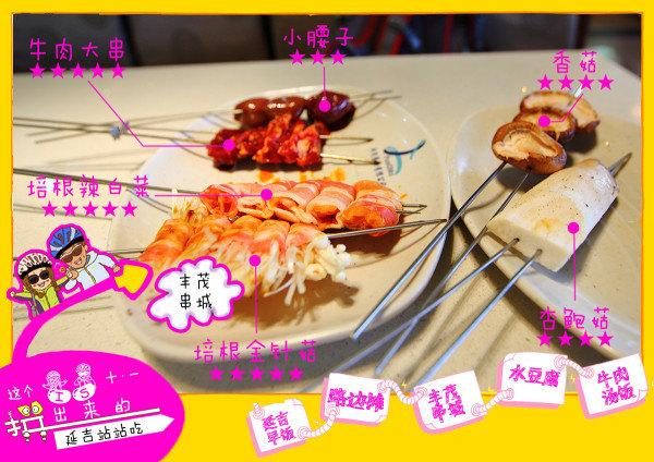 沿着人民路走,路边的小鱼饼和华夫饼把我诱惑的走不动了!丰茂串城。串串怎么能这么好吃呢! 嗯,太会腌肉,太会配调料了!而且吧,烤串还是自动的,放上去,自己转着烤!我最爱的冷曼思密达,连续吃多少顿我也爱吃! 和昨天吃的金达莱冷面一样,里面的两个肉丸仍旧是那个能吃到骨头渣的纯肉丸, 吃的好满足好满足~~ 朝鲜打糕,老公的最爱,因为点的有点儿多,我们吃了一半。 第二天火车上,这就是早餐啦!米酒,15米一扎,我还是觉得是酒,我喝不惯!当当当,水豆腐隆重出场!10米/套。 根据自己的口味把调味酱料放入水豆腐中,即可~~牛肉汤饭呢? 哈哈,我就顾着吃我的那碗水豆腐了,忘记拍了!