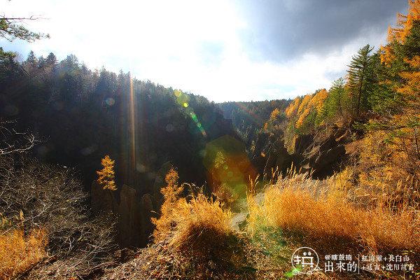 车行20多分钟,终于在大峡谷的门口停下! 此时,我还心心念着想看看可以否看到第二眼天池,只是那边的雾还没有散去,天依旧阴沉沉的。 不过,这时的大峡谷已经拨开云雾,释放了灿烂的阳光。大峡谷谷底布满形状各异的石林,十分壮观,据说下面的流水十分神奇,常年温度在3—4度。由于这里是动物的水源,因此经常有摔死的动物落到水里,动物的尸体泡在水里很久都不会腐烂,长久保持肉质新鲜。好啦,快走进大峡谷看看吧!