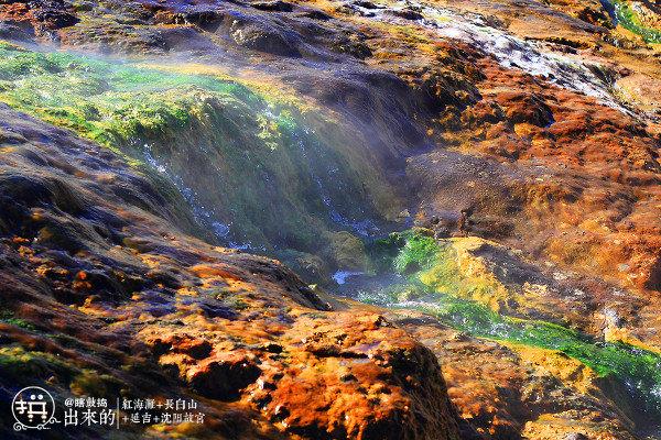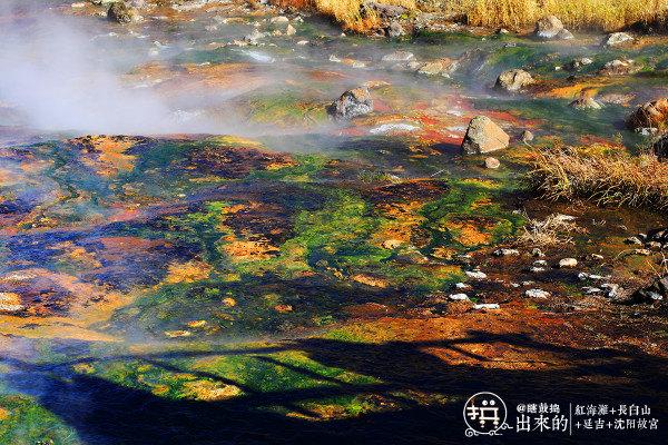 温泉的暖,遇到室外的冷,让眼前的白山溪水仙雾缭绕。长白山温泉有“神水”之称,由于水质中含有大量硫化氢和多种微量元素,也让眼前的这些岩石的颜色也鲜艳异常,甚是迷人。