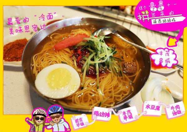 出了延边大学,我们屡着公园路、人民路径直往前走,由于夜幕降临,满街顿时灯火通明,很是漂亮! 我们想,走到市中心的百货大楼,应该更加热闹!哈哈,快到百货大楼时,我看到了馋涎已久的冷面——金达莱冷面。不由分说,快来着! 因为天气较冷,我点了一个荞麦温面。 美食,确实当地的更正宗! 里面的各种辅材相当之丰富,肉肉有好几块,那个丸子,绝对纯肉打造哦,还能吃到里面的小碎骨呢~~ 味道,能不赞吗?