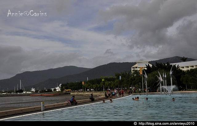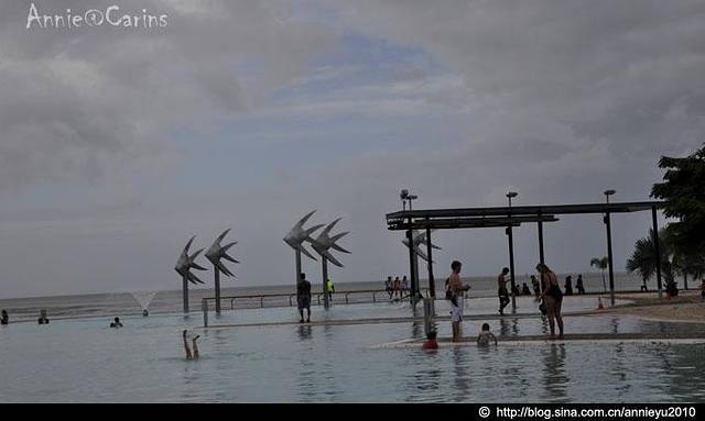 这是凯恩斯著名的滨海大道The Cairns Esplanade, 巨大的市内人工湖是一年四季游泳的理想场所。滨海大道旁边,常年会有这样的乐队献艺,给游客们带来快乐是他们生活的一部分。