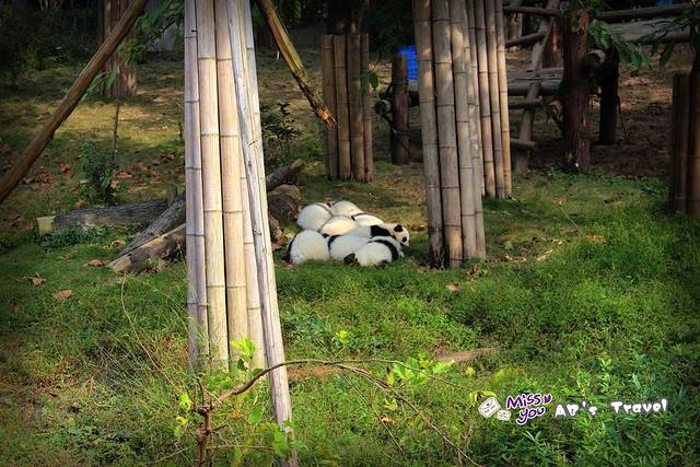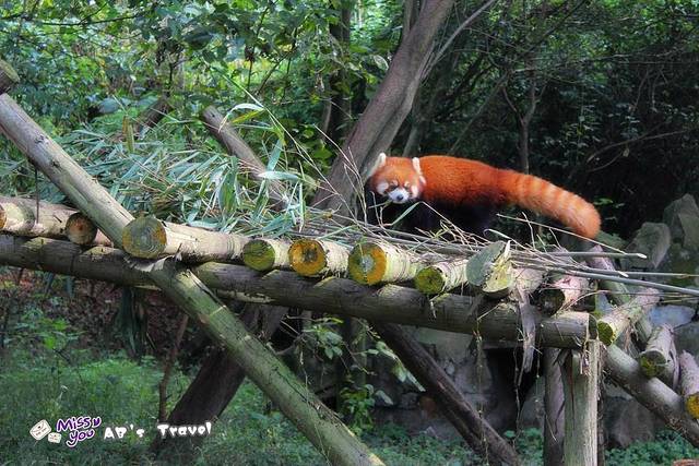 说好早上七点起床,八点出门,但是某人和某人都到八点起床,然后折腾到九点出门。酒店楼下就有直达大熊猫基地的902路公交车,大概40分钟,很方便。由于出发时间比预定时间晚了一个小时,又没有随身带零食,导致我们中餐无法解决,是从大熊猫基地饿着回到酒店的,杯具。 成都大熊猫繁育研究基地里面也有小熊猫可以看,承子曾经很弱智的问我,小熊猫是不是大熊猫小的时候,我白她一眼,说了一句,没文化,真可怕!大熊猫,小熊猫,傻傻分不清楚!