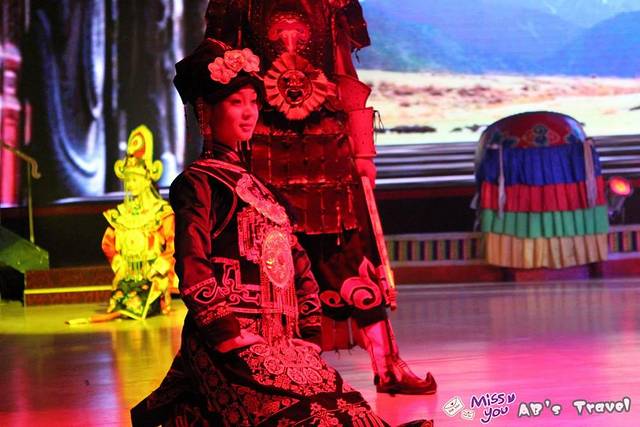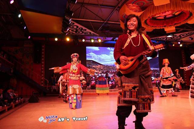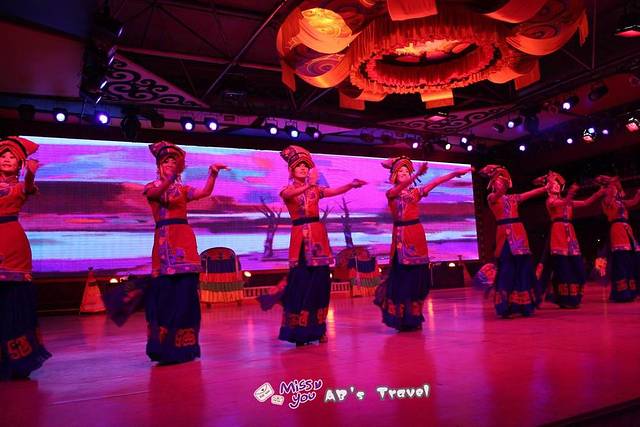 夕阳无限好,只是近黄昏,要下山了,九寨沟,你不能只来一次的地方!很喜欢的地方,前面也说了,有些海子没有看到,有些景色没有仔细游览,但是这不是为我下一次来九寨沟留下了更美好的期待么!晚上要去看一场羌藏表演,在高原红演艺场,用完晚餐就直接杀到,坐等开场!演出很精彩,尤其是民族服饰展示和羌族民族舞蹈,真的非常不错,关键是有个羌族阿妹很漂亮,我给了她很多镜头,恩,是的,很漂亮,比我身边的两妹子都漂亮!