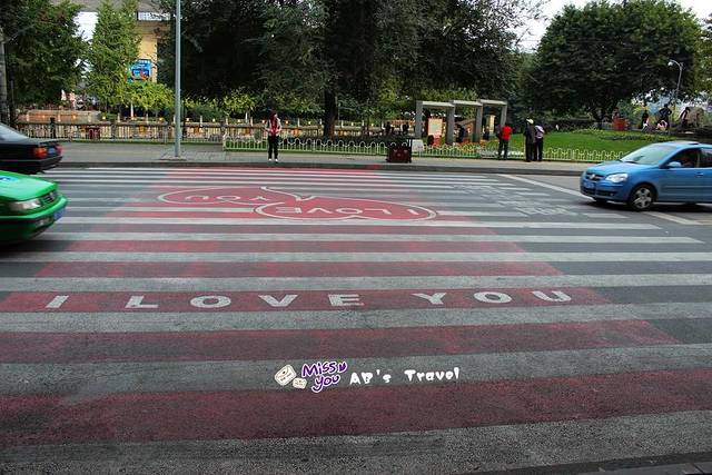 吃完饭坐公交去看著名的爱情斑马线,听说全国只此一处,并无二家。爱情斑马线,你能留住脚印,可以留得住爱情么?