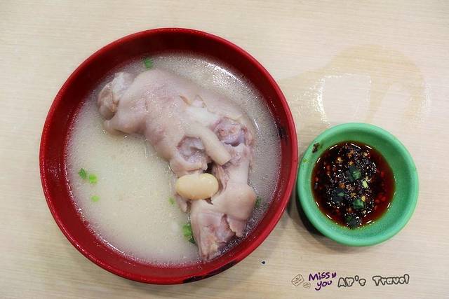 老妈蹄花也一样,认准廖老妈,一排几家,别走错了。从肥肠粉店出门左转,走大概五分钟就到了,很近。 我一直以为那是蚕豆,但是人都说那是黄豆,这么大的黄豆?猪蹄很好吃,汤很鲜,蘸料吃更好!一份20元,值这个价格!