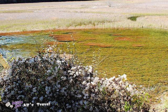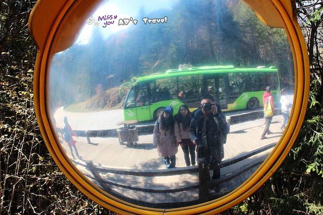 美丽无法言表,就我这词穷的,只有在心里慢慢激动,慢慢回味。游览完长海和五彩池就坐车下来了,上下季节海确实没什么意思,上去的时候在车上看到下季节海都枯水了,所以直接坐车直接到诺日朗转车去日则沟,中餐就简单吃了点随身带的零食,诺日朗里面吃的太贵了,我们都没进。 很喜欢这种镜子,每次碰到都想停下来照两张,估计是因为这样会显瘦吧,呵呵,貌似真的很显瘦,后面那谁,还我的帽子!