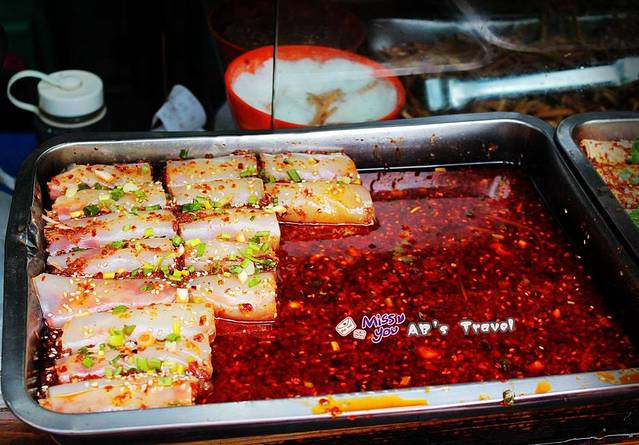 龙抄手店隔壁就是洞子口凉粉... 这个是黄凉粉,口感比较粗,不知道什么原料。 这个是白凉粉,比上面的好吃,口感也细腻,就是觉得能再辣点就好了。