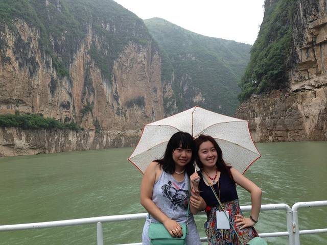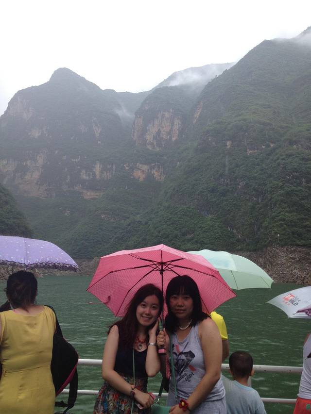 这才是本次游玩的关键。早就听说过巫山云雨,没想到到了这里真的很应景的下了小雨,整个游玩过程中几乎是在船中度过,难忘的除了自然景观,当然还有人文情怀。好交朋友的我们在这里认识了几位来自河南的朋友,大家聊得很畅快,加之导游解释的相当到位,时不时的在走出船舱,看看大自然的鬼斧神工,望一望那碧波,那高山,不难想象为什么古人即使被流放也心情荡漾,因为好山好水好开怀。由于三峡蓄水,水位上涨,会破坏很多自然景观,喜好游历山水的亲们千万要赶在更多美景没淹没前一睹三峡的美貌