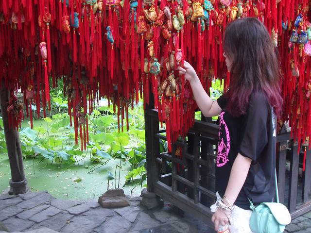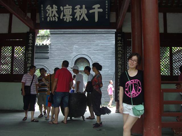 貌似是去武侯祠的时候有地接团付了门票钱就可以把你带过去,很方便。杜甫,这位在我们童年的书本中常出现的文人,在现代社会中也经历过“杜甫很忙”的现代热,不管怎样,还是要去看看这位古代大文豪“茅屋为秋风所破歌”的创作“殿堂”。和武侯祠一样,因为有了历史典故以及古代的名人效应,让我们这些外来旅客总忍不住想从这古迹斑斑中去窥视历史的痕迹。确实古朴,低调,犹如它的主人一样。这里不像其他的文化古迹严肃凝重,反而像一个很大的公园,让人们在轻松怡然中寻找真实,这就是成都的魅力。现在回想起来几个瞬间还是比较难忘,例如那里的紫薇花,不由得让我想起那些经典古代剧中的皇阿玛爱情的桥段;偶遇一群做志愿讲解员的小朋友,专注的让你不忍心去打扰他们;凝视小河里的鲤鱼,不知道他们中那一条是“牡丹小姐”养过的富有灵性的鲤鱼精。总之这个下午,在怡然自得,缓慢慵懒中度过。