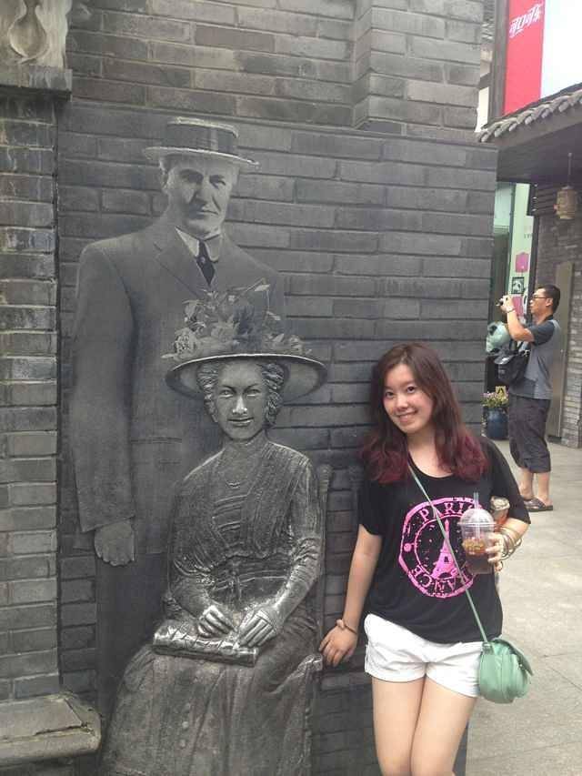 成都的特色在于你以为它很古典,实际它很时尚,你以为他很本土,实际它又很国际。走在宽窄巷子大概就是这种感觉了,来往的国际友人与我们这些黑头发的炎黄子孙交相辉映着中外文化,宽窄巷子确实有中西合璧的气质。茶馆,酒吧,小吃,饭馆应接不暇,走累了就去坐一会吧,墙壁上的涂鸦,摄影照片,还有那些会动的“假人”,把新旧快慢的成都特色体现的淋漓尽致。