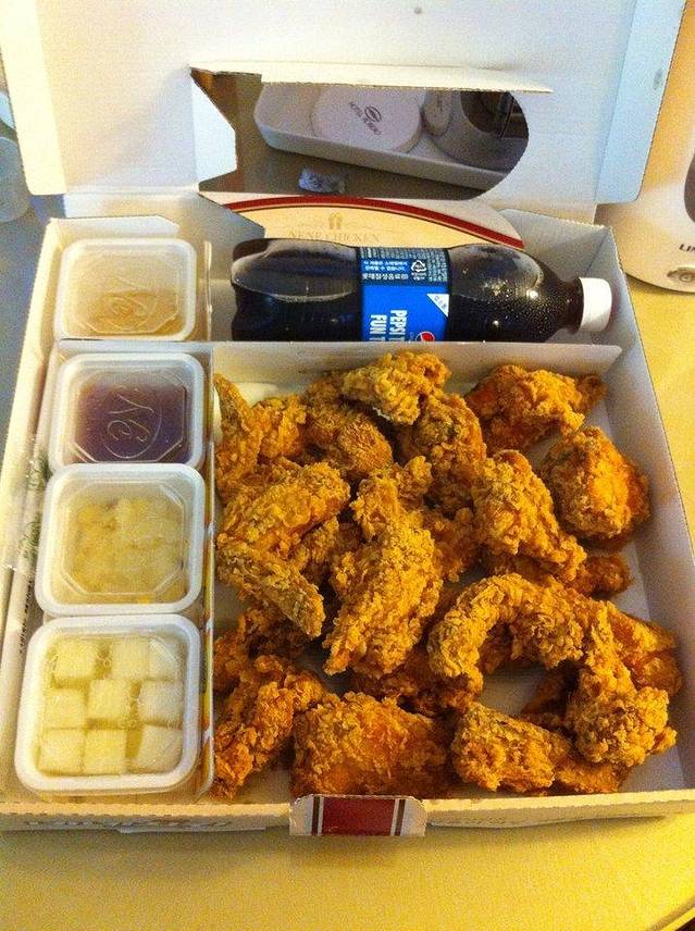 因为一个热播剧,因为一句“下雪天,就该吃炸鸡喝啤酒”搞得在上海要吃到这个可不容易了。而在韩国本土分分钟都可以买到不用排队,看到了就吃一下吧,也没有相像中的好吃,就是量挺大的。