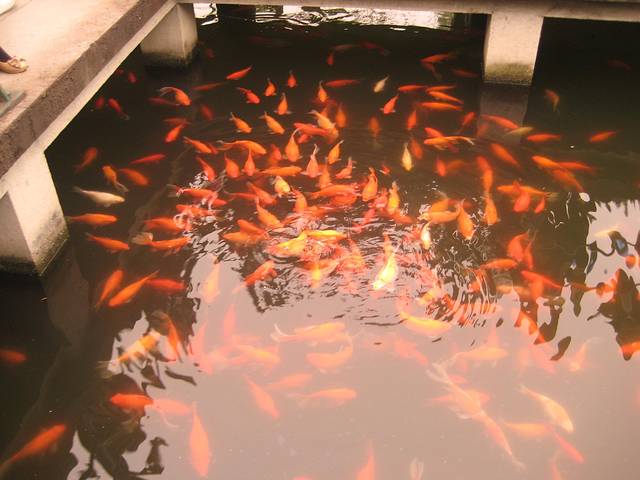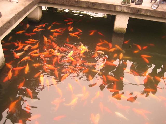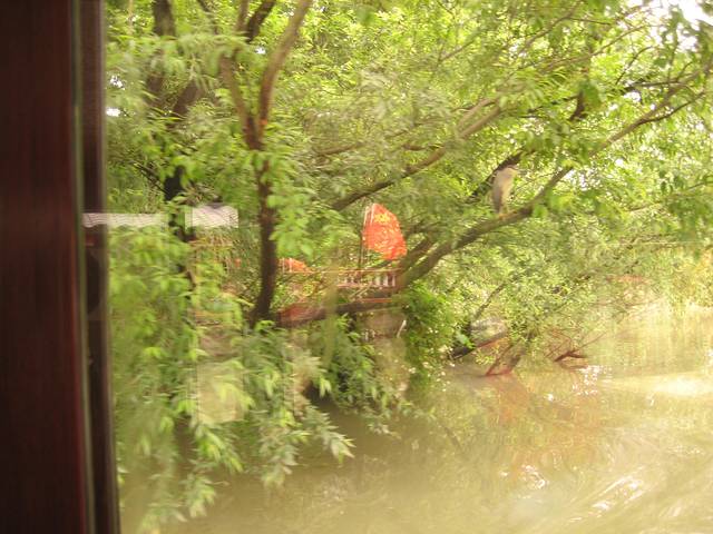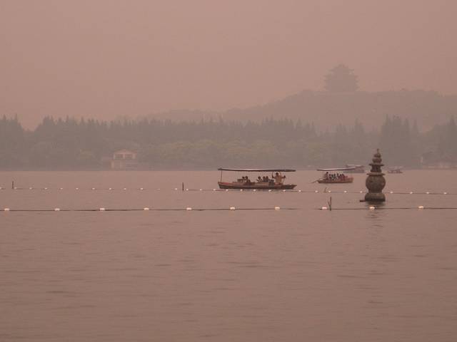 在苏堤。一定要租自行车,太大了,累坏!!!但是没租到,一定要早租!花港观鱼很好看。整个西湖都很漂亮。但是人很多!