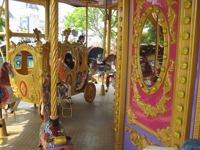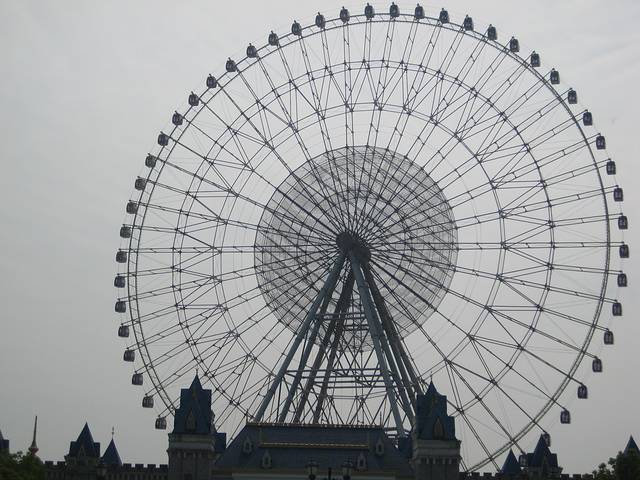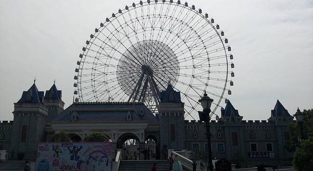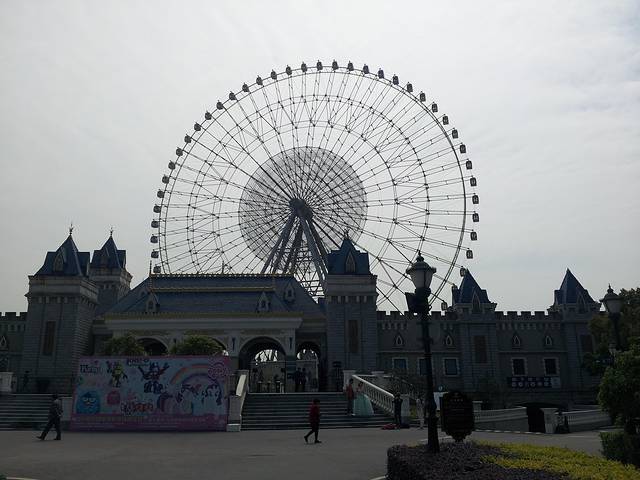 门票学生证半价40,我们去的时候正好每个项目都开了,通票包括摩天轮,过山车,disco,星空秋千,旋转木马,游船去湖中心的桃花岛。