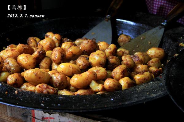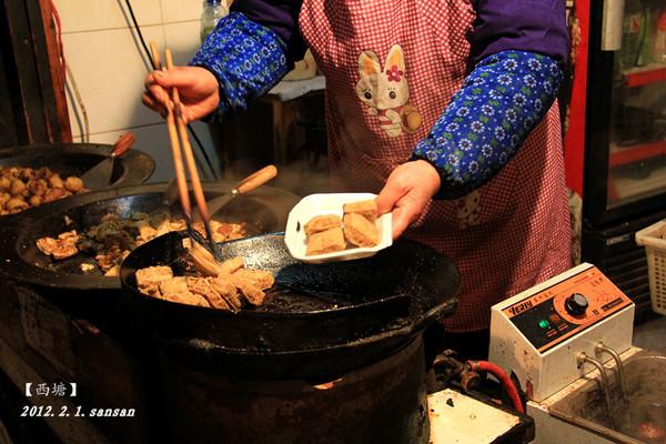 放下行李后觉得好饿,出门觅食。 这家叫做“管老太臭豆腐”的小吃店就在水景园客栈的旁边, 真心推荐这家的小吃。 臭豆腐, 小土豆, 馄饨, 粉蒸肉等等美食都很好吃。 管老太也特别亲切, 五元钱的土豆她会给你一大份。