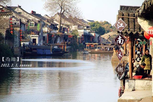 3. 打车从嘉兴汽车站到汽车北站,然后坐城乡巴士到达了西塘。票价六元。每半小时一辆, 开了1个多小时到达。
