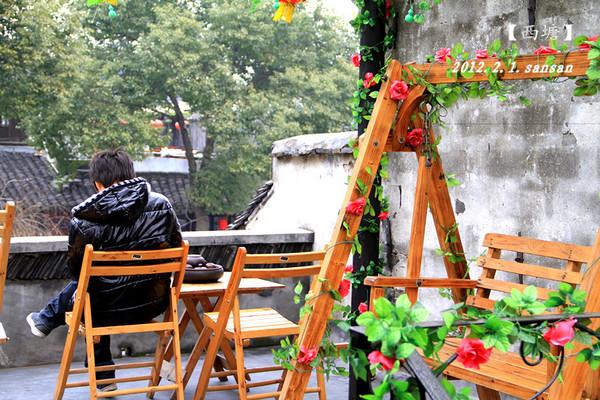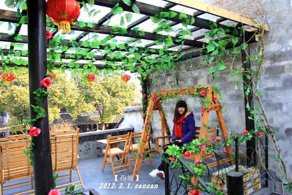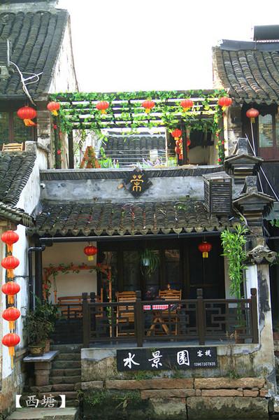 这是我们住的宾馆,是一家叫水景园的小客栈, 位于西塘的小河边。坐在木椅上喝喝茶,就能看到摇橹的老人和美轮美奂的景色。即使坐在这儿晒晒太阳,也觉得很温馨。 时光仿佛过得很慢,这就是西塘的魅力吧。