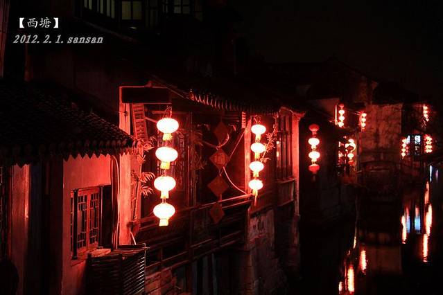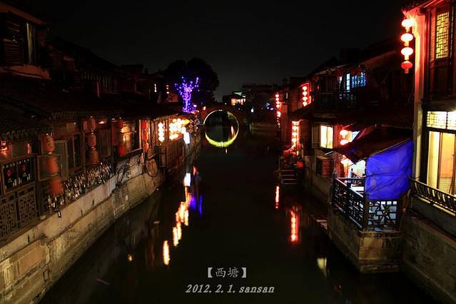 夜色下的西塘。应该去酒吧街溜溜了。~歌舞笙箫的酒吧街,比乌镇的热闹多了。一杯西塘蓝,一杯日出。在水边的夜。