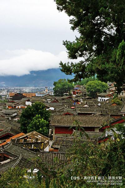 当时的大研古城,早已不是网上所描述的那种远离城市喧嚣的小镇,其商业开发度与国内各景区无异,那林立的商家已经让人没有了闲逛的兴趣,于是,我们登上文昌宫,在那里喝茶俯瞰古城。。。当时下着很小的雨,古城被笼罩在阴云细雨之中。。。