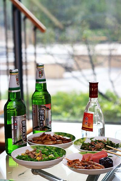 睡到中午起来,俩人各炒了俩菜,继续喝。何以解忧,唯有杜康。