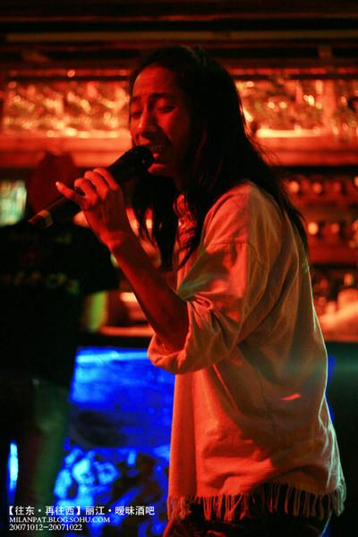 去丽江的人,可能不论是怀揣着什么样的心情,都要去感受一下酒吧的暧昧,我亦未能免俗。前面提过,在丽江的日子里,除了睡觉就是喝酒,和自由营地的代队还阿中,每天都去。。。干掉几打啤酒,感受着小巴黎里的喧嚣与浮华,虽然生性喜静,仍会被那种气氛所感染,会跟着歌手歇斯底里的节奏不由自主,会欣赏着漂亮MM的花容月貌心旷神怡,会迷失在酒精、音乐、灯光和红男绿女所营造的那种暧昧之中。。。