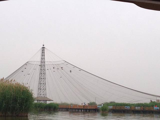个人比较喜欢有水的地方,,而且这一天天有点阴,坐在船上还能感觉到风吹来,所以坐着船去沙湖鸟岛和沙漠区的路上感觉特别舒服。这里要提醒大家一下,打算去沙坡头的朋友们就可以不用在这里浪费银子了,这里的娱乐项目种类和沙坡头差不多,但是基本都比沙坡头贵
