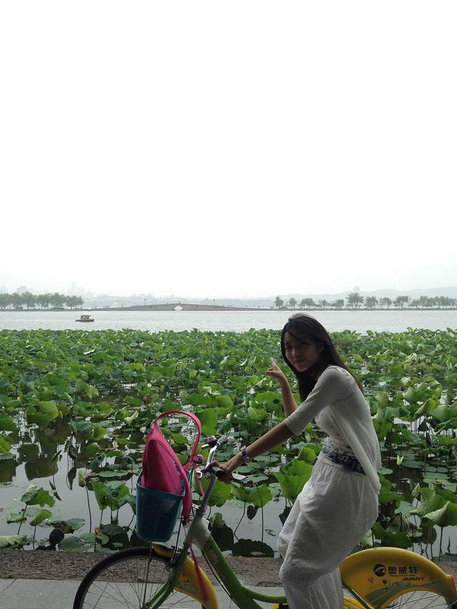最喜欢的骑单车环节!!!骑单车爽快的绕湖一周 深刻感受了西湖的魅力 轻柔的湖风吹进了心里 柳条触着发梢 西湖水平静又有潮涌 骑起车来 似乎我就是风