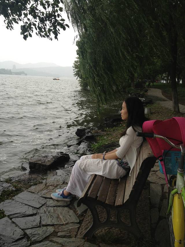 骑累了 坐在湖边 真是棒极了!!!!!!和西湖深度接触!!!!!那些风 吹得我 都酥了