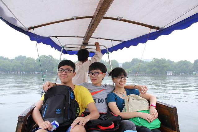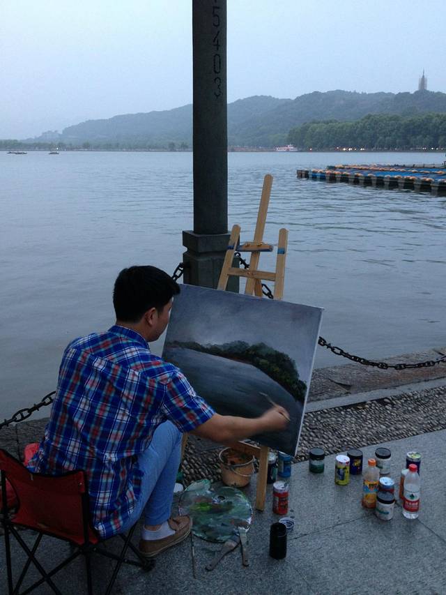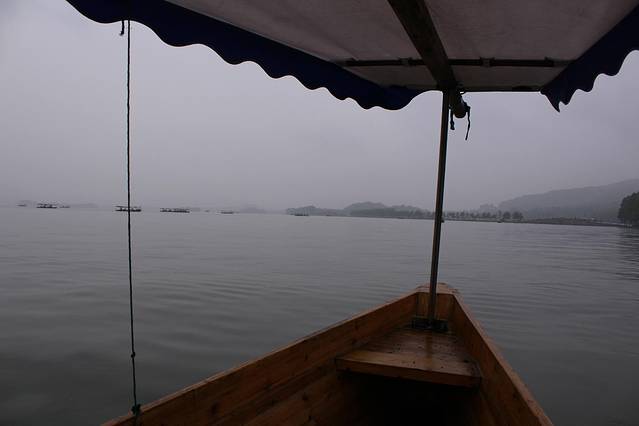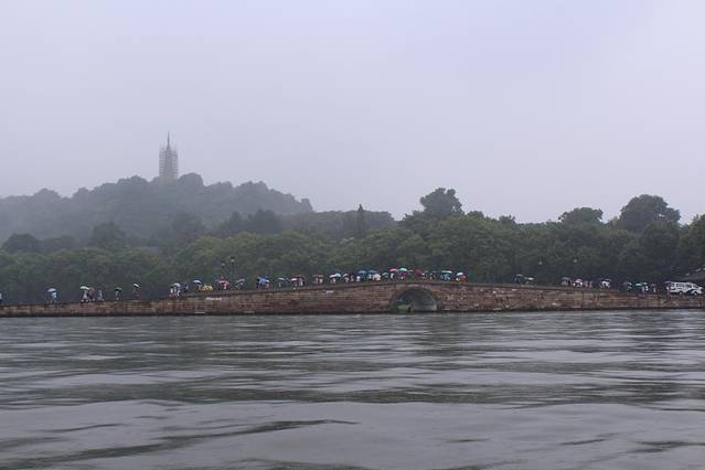 早上下着雨,打着伞,呼吸着湖风,上了一叶扁舟。看着外面的雨点砸在湖面上,一望无际平静的湖面上有许多游船,不远处就是许仙和白娘子的断桥,断桥上面就是雷峰塔了。感觉自己是这世上渺小的存在。船夫很赞,聊了很多可爱的故事和人生的道理。