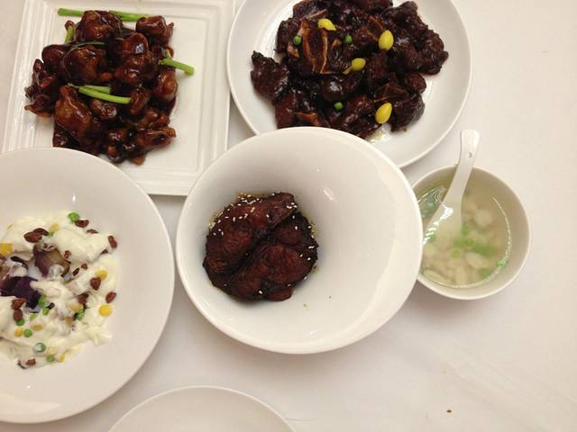 小笼 猫耳朵 杭州酥鱼 糖醋排骨 坚果杂粮沙拉 葱包烩儿 牛仔骨