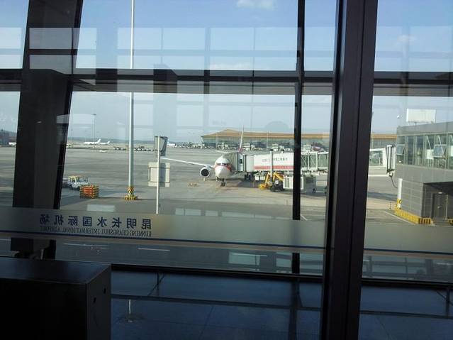 这是在昆明的地铁上,昆明的地铁只有这一站,从什么公交总站到机场,这地铁空荡得夸张,还有地铁不是都在地下吗?18点45的飞机不到17点就到了昆明长水机场,结果还遇上祥鹏航空的航班晚点,一直到20点多了才起飞,倒霉。