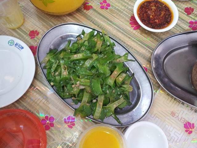到店后那个大概是老板娘吧(就是下图穿白色T恤,笑得很灿烂的那个),叫了小妹(黄T恤)带我们去买海鲜,这小妹真的不错,不断帮我们杀价,后来买水果时为了帮我们讲价还和别人吵了起来,感谢了哈,我们买了龙虾,和乐蟹,圣子,扇贝,芒果螺,总共300块,老板送了四角豆,椰子饭,又点了芒果汁,后来补了90多块的加工费吧,一家五口总共不到500块,吃得爽,而且还不贵。叫孩子拿着龙虾照像,可她不敢,这胆子,哎!四角豆,脆就一个字啊!旁边的碟子里是老板娘送的蘸海鲜吃的酱,说是他家秘制的,别人来买都不卖的,味道还不错。菜上齐了,开吃,那钳子和剪刀是用来弄龙虾的钳子的