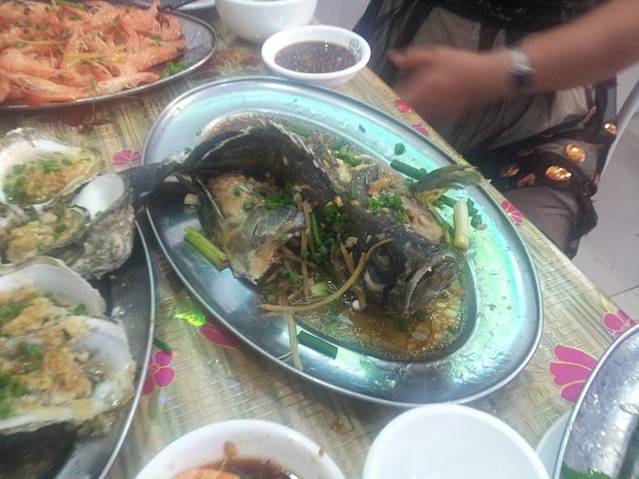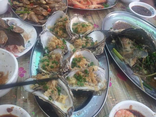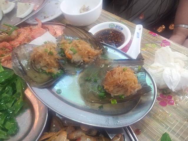 这次去找了一男的带我们去买海鲜,态度比上次那小妹就差远了,买那条老虎斑时差点被吃秤吃了20块,还好我带了电子秤,这次买了带子,老虎斑,濑尿虾,基围虾,海胆,生蚝,鲍鱼,差不多也是三百块,老板送了椰子饭和四角豆,淘宝上买了80的加工费,结账时只补了40多,划算。。。老虎斑,石斑的一种吧,经常在香港电视剧里看到,以为是多么的高大上!椒盐濑尿虾,严重推荐,太好吃了,以前吃过这个濑尿虾,白煮的,完全没人家这味道啊!