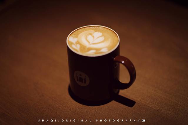 这是同去的朋友的拉花咖啡。以后再去,可能可以请咖啡师根据自己的喜好和需求拉花了,表白神器啊!这个拉花也是当时我提出来他们给拉的~~ 可以想想,服务员端来一杯写有自己名字缩写或者一个爱心的特制咖啡时,每个女生都会有的感动