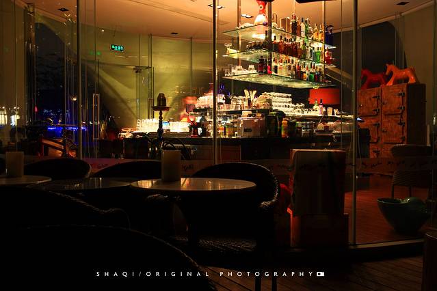 这个小酒吧,不大,播着轻柔的音乐。和远处喧闹的酒吧比较起来,显得清静又高傲。像是一棵不愿同流的白莲花。玻璃立面外还有一圈凳子,直接依靠着湖,视线极佳。立面还有一个不知道是老板还是合伙人还是就是服务生的外国服务生。喝的东西大同小异,但是环境和感觉我很喜欢