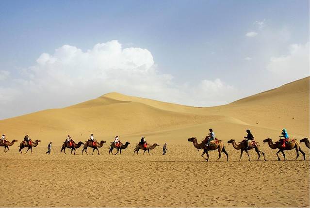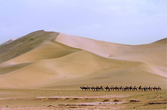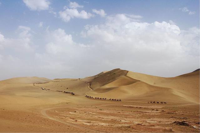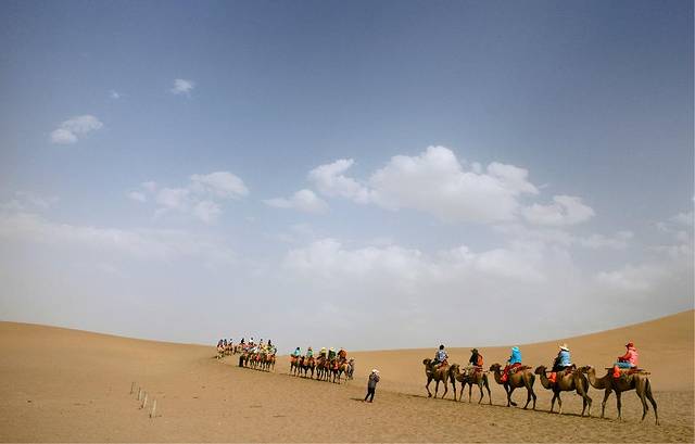 对于大漠的初印象,是从各种图片、文字、纪录片中拼凑出来的,大漠戈壁的神秘与苍凉,经常会教人浮想联翩,一望无际的沙漠,一位旅者背着行囊手牵骆驼,沿着曾经鼓角争鸣的河西走廊,渐渐消逝于风沙弥漫的尽头......