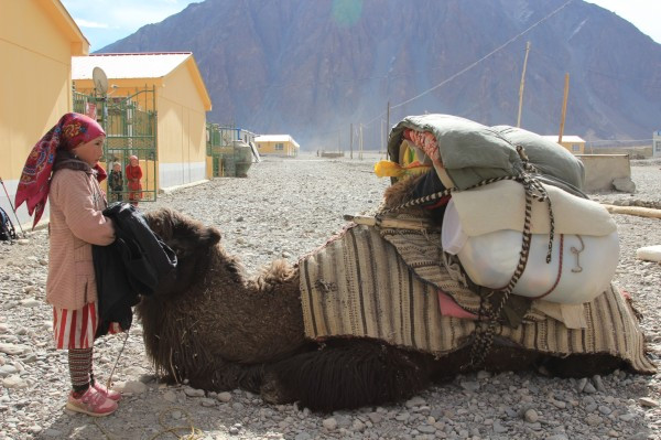 物资清点齐备,8峰骆驼也集结完毕,除此之外驼工还带了两头驴子,一条狗。之后回看,额外的驴和狗在穿越过程中起到了非常关键的作用,两头驴子除了让我们每天意淫驴肉火烧之外,过河驼人越野性能秒杀任何豪车,一条狗为我们驱狼守家尽职尽责。基本上村里大多数人都来为三位驼工践行,驼工的家眷们更是倾巢送行,一位小女孩安静的站在骆驼旁,握着鼻环,让我想起一幅画。