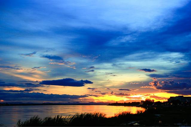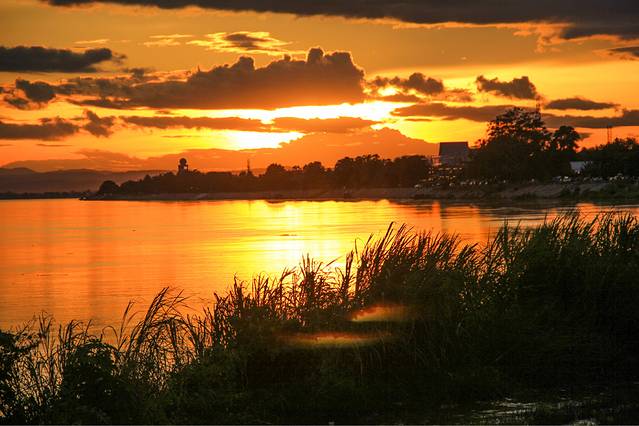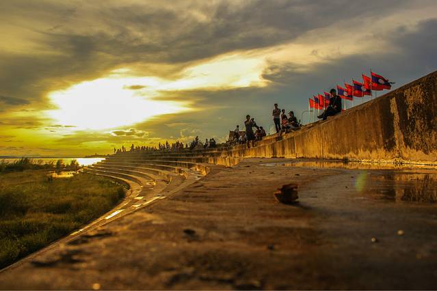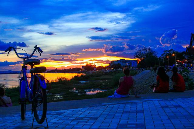 9.万象的湄公河公园的晚霞很漂亮很值得一看。
