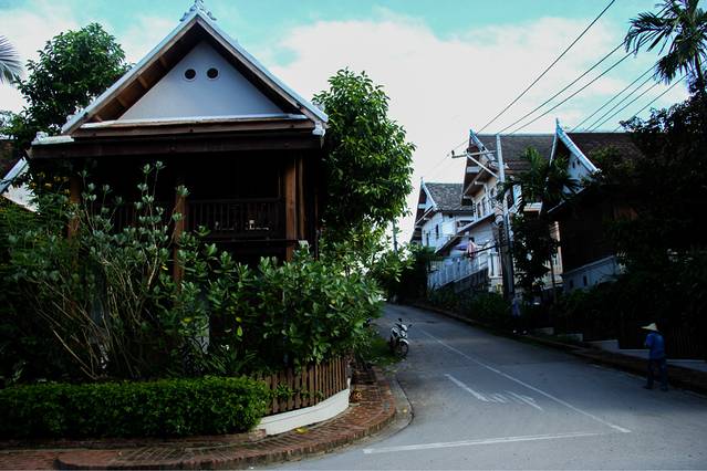 香通寺出来,往GH的路上,沿着河走,一路上的风景,一路上的法式建筑再加上东南亚的元素,琅勃拉邦给我的感觉就是,好像是走在电视里看到的欧洲的小镇上,慢节奏,闲适。可能琅勃拉邦吸引人们的地方就在于此吧。。