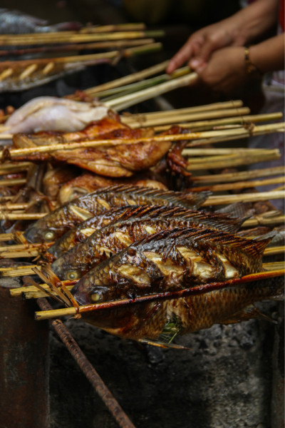 在老挝的最后一个晚上了,我们身上也还有钱,所以决定吃好一点,吃多了几顿。离开老挝前,又吃了一条烤鱼,每人一杯SHAKE,全都饱饱的。