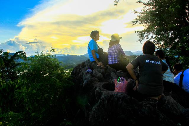 上来看日落的人很多,整个山都是人。他们都在享受着日落的阳光,我们也是。