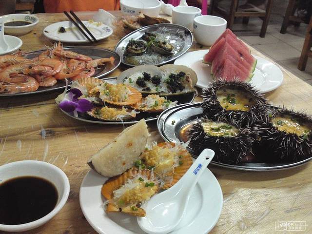 路费12(公交车2块打车起步价8块)吃饭100左右(包含基围虾芒果螺(辣味的特别好吃)海胆蒸蛋象牙蚌扇贝小鲍鱼等)