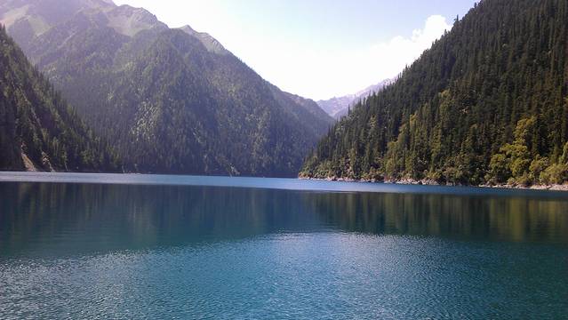 九寨沟的最高点——长海,蓝天白云,高山湖泊,竞相辉映,人家天堂的称呼一点都不为过。