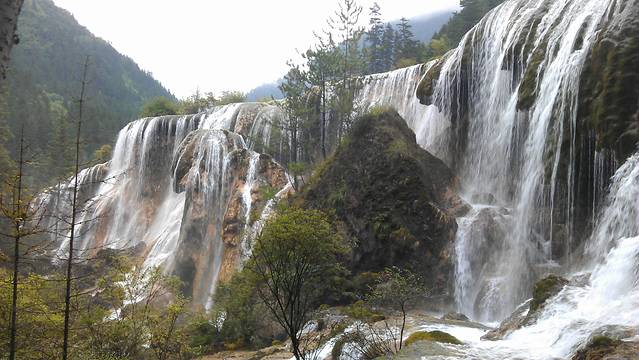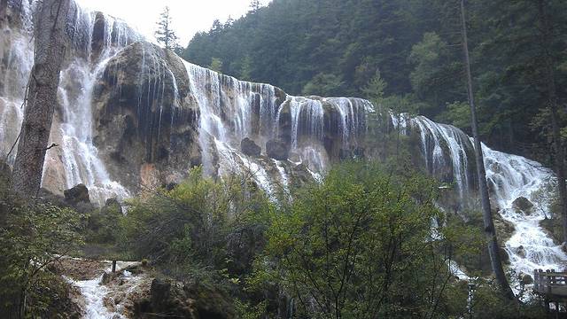 镜海两边没有栈道,在镜海拍完照后,乘车前往五花海,然后从五花海走栈道自上而下游览(五花海—金铃海—珍珠滩—珍珠滩瀑布—镜海停车场),整个九寨沟游玩的时候,都要遵循自上而下的政策,因为九寨海拔较高,爬楼梯是非常耗费体力的,很辛苦的。珍珠滩瀑布是拍摄西游记的地方,风景非常美,是九寨最大的瀑布,但是一定要早点游览哦,如果睡懒觉的话,会遇见大批旅行团的,很煞风景的。