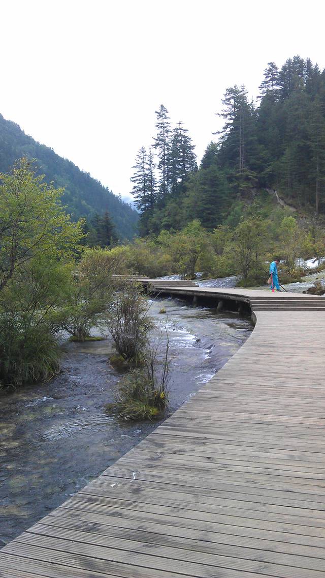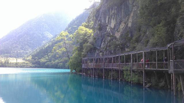 五花海。嘻嘻,看栈道,一个人都没有哦!